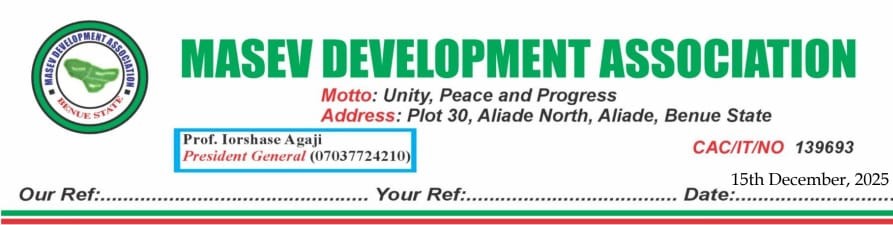 Masev Development Association is a socio-cultural association for Masev people. Masev people are found in Gwer East and Makurdi local government areas of Benue state. Major components of Masev are Ngyohov, Yonov and Njiriv. The aim of the association is to foster unity, peace and progress among Masev people. The Association was founded nearly fifty years ago and has branches accross the country. The Association has recorded progress, unity and peace among Masev. Visible projects of the Association include the establishment of Masev Community Secondary School Taraku in 1979